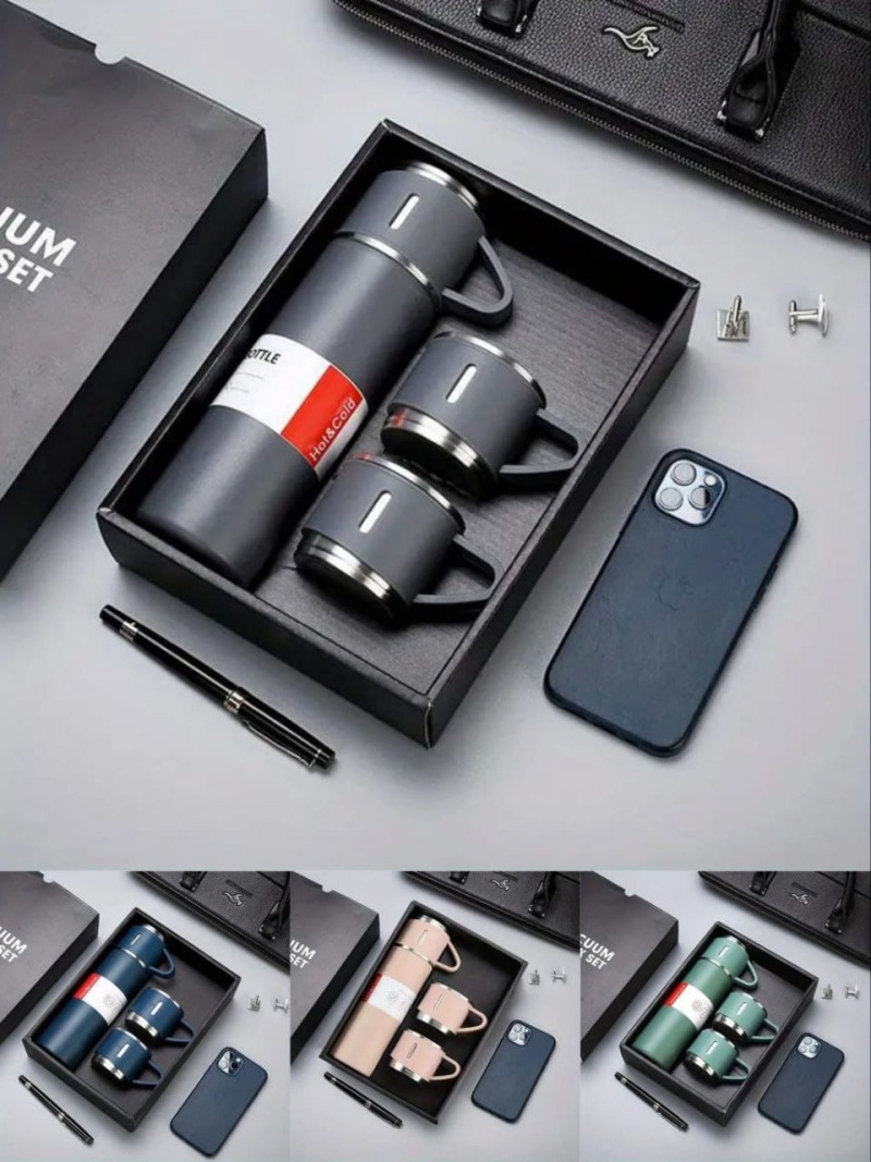 ترمس حراري من الفولاذ المقاوم للصدأ سعة ٥٠٠ مل مع ٣ أكواب، معزولة للمشروبات الساخنة والباردة