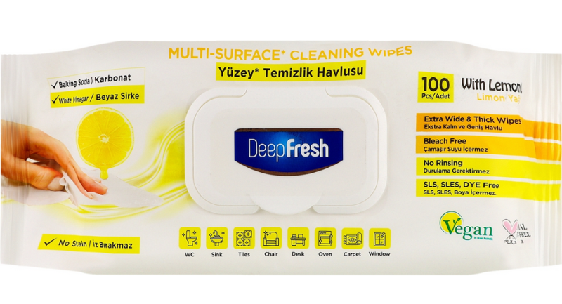 ديب فريش مناديل مبللة لتنظيف الأسطح100 قطعة رائحة الليمون