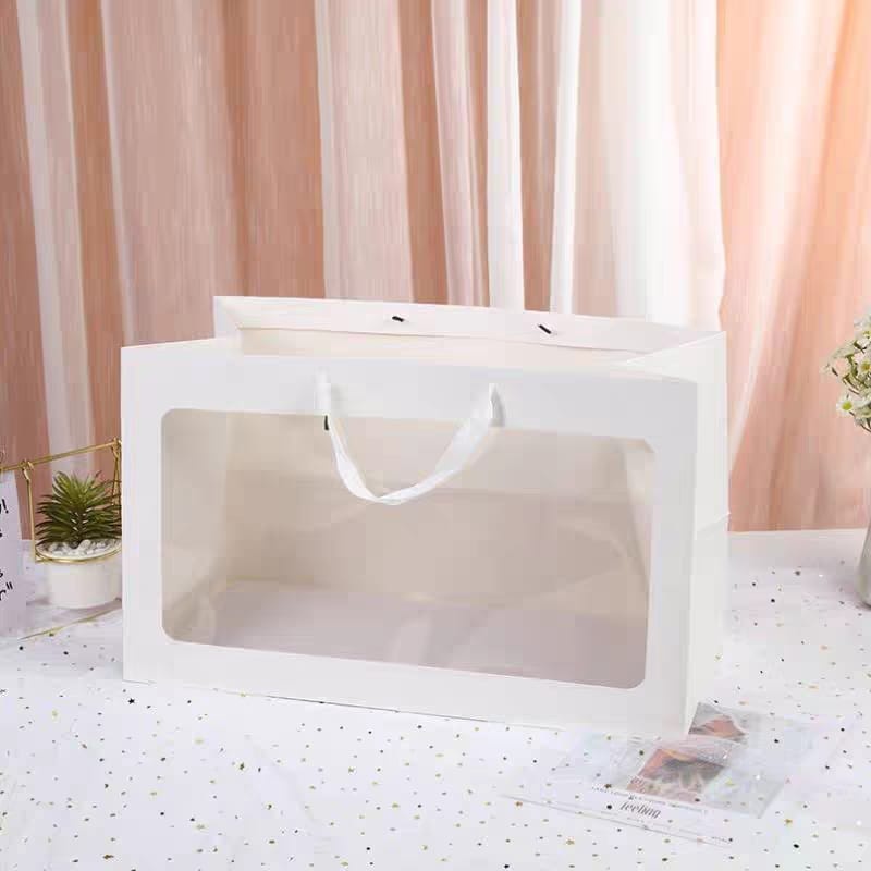 كيس هدايا كرتون بنافذة شفافه ومقبض شريطي