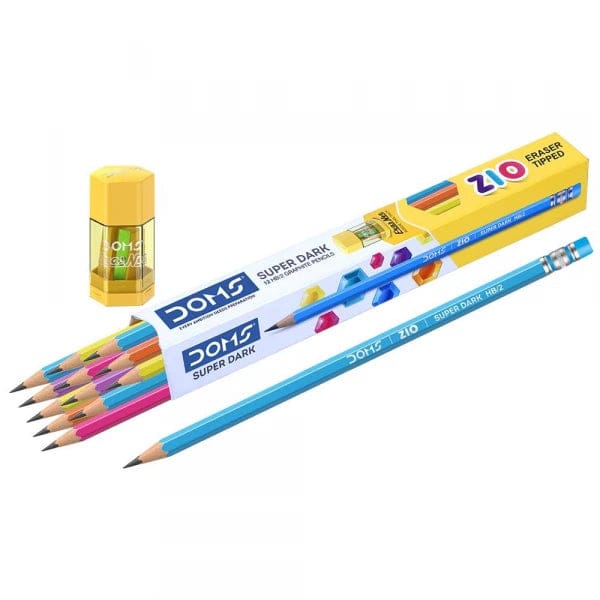 أقلام رصاص جرافيت دومز سوبر دارك HB2، ١٢ قطعةأقلام رصاص جرافيت برأس ممحاة من ZIO ، مصنوعة بتقنية ربط دقيقة وجرافيت عالي الجودة لكتابة أنيقة تدوم طويلًا.ممحاة - مبراة مرفقة