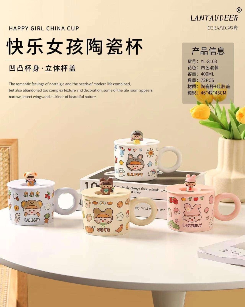 كوب قهوة سيراميكي بتصميم الفتاة السعيدة سعة 400 مل