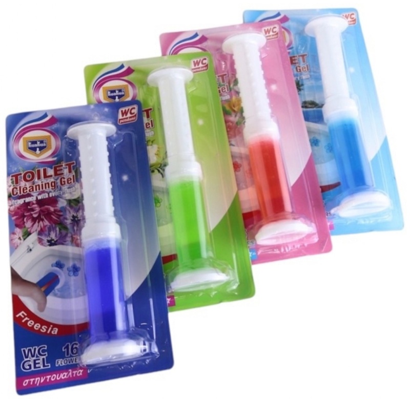 قم بإزالة الغطاء ووضع طرف أنبوب الجل بالقرب من حافة وعاء المرحاض. اضغط مع الاستمرار على الزر أثناء دفع الوحدة باتجاه الوعاء. عندما ينقر الزر في الفتحة التالية، اسحب الوحدة للخلف لترك ختم جل.